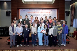 | Ms Clara Li (first from left, front row), Head of Public Affairs Division of Consumer Council, and Professor Kwan Hoi-shan (second from left, front row), Chairman of the Expert Committee on Food Safety take group photo with CLG members | Group representative shares discussion findings with participants |