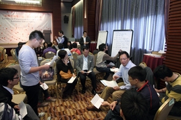 | Dr Teresa Choi, Principal Medical Officer (Risk Assessment and Communication) of the Centre for Food Safety, briefly introduces food safety control principles | CLG members hold discussion and sum up key points |