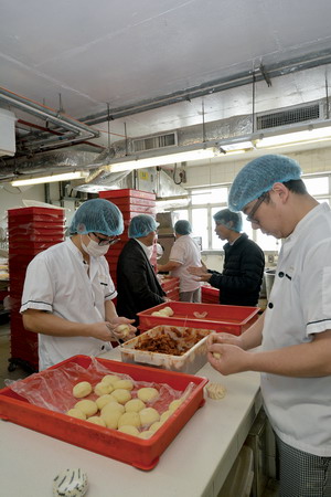 - Add oatmeal to knead a dough for making buns. Scoop out the centre of the buns to form a bowl shape. Steam the buns in a steam cabinet. Steam until done.