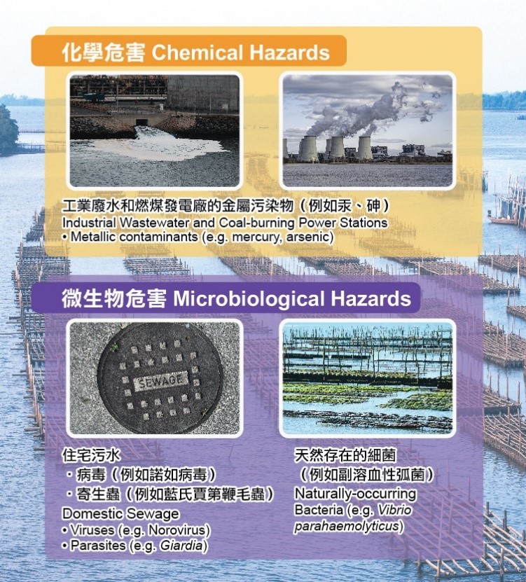 As oysters constantly filter seawater, metallic contaminants, such as cadmium, lead and mercury, from the environment will accumulate in oysters, particularly in their internal organs and digestive tracts. Various industrial activities can lead to the discharge of metallic contaminants into the sea, which may in turn contaminate the oyster harvesting areas nearby. Prolonged consumption of oysters containing excessive cadmium and lead can be harmful to kidneys and neurodevelopment. - Pathogens