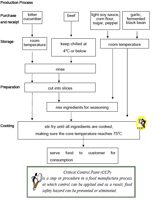 In the following, we provide safety tips on preparing a popular dish called Stir-fried Bitter Cucumber with Beef. We demonstrate the application of a food safety management plan her while making this dish.
