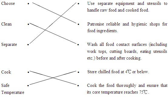 Foods will be directly or indirectly contaminated with microorganisms if food handlers fail to follow good personal and food hygiene practices in food preparation (e.g. not washing their hands thoroughly or storing cold dishes improperly). Taking jellyfish as an example, rinsing and soaking jellyfish with contaminated water, or improper storage of cooked jellyfish may cause microorganisms to grow in large number, affecting the microbiological quality of the food products. As for bean curd with lime preserved eggs, the preparation of this cold dish involves manual handling. Cutting the lime preserved eggs with a knife used to cut raw ingredients will lead to microbiological contamination. |
