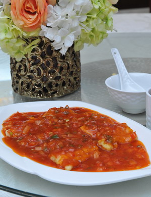 Add a small amount of water to the wok. When water boils, add the cut ingredients, a suitable amount of ketchup, sweet and sour sauce and cornflour to thicken the sauce. After bringing the thickened sauce to the boil, pour it onto the sole fillets. Ready to serve. | The sauce should be kept boiling for at least 1 minute before being poured onto the sole fillets. The food should be consumed immediately. |