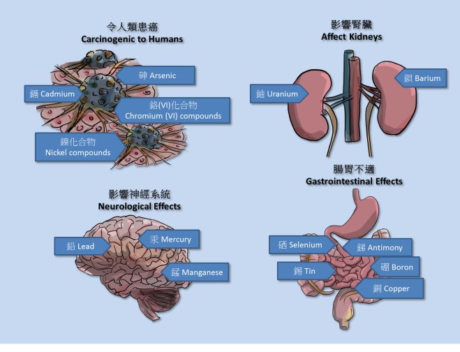 Metals are natural components of the earth's crust and are ubiquitous in the environment. We need some metals such as copper, chromium, manganese and selenium in a trace amount for normal body functions, but excessive exposure can have negative implications. Some metals like arsenic, cadmium and lead serve no functional purpose and are harmful to our body.