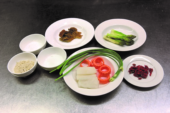 - Presoak the bamboo pith, elm fungus and Chinese wolfberries in clean water and drain well. Keep the ingredients refrigerated at 4ºC or below for later use.