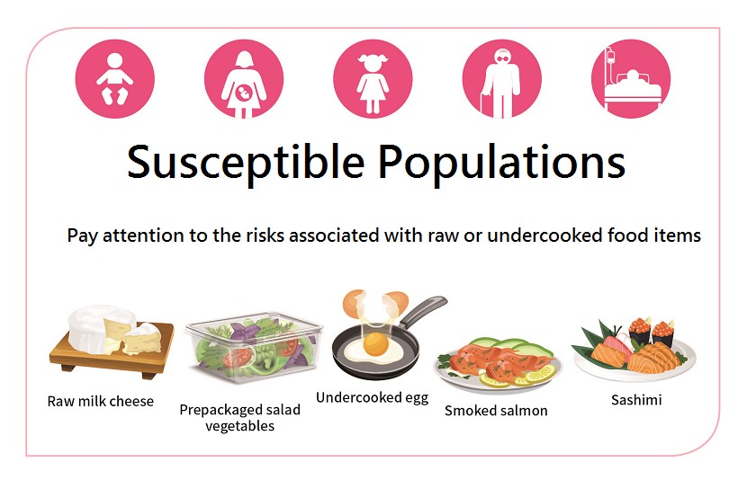 Figure: Persons susceptible to pathogen infections are advised not to consume raw or undercooked foods.