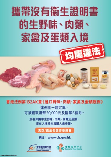It is an Offence to Bring any Raw Game, Meat, Poultry or Eggs (except Fully Cooked Eggs) without Health Certificates into Hong Kong