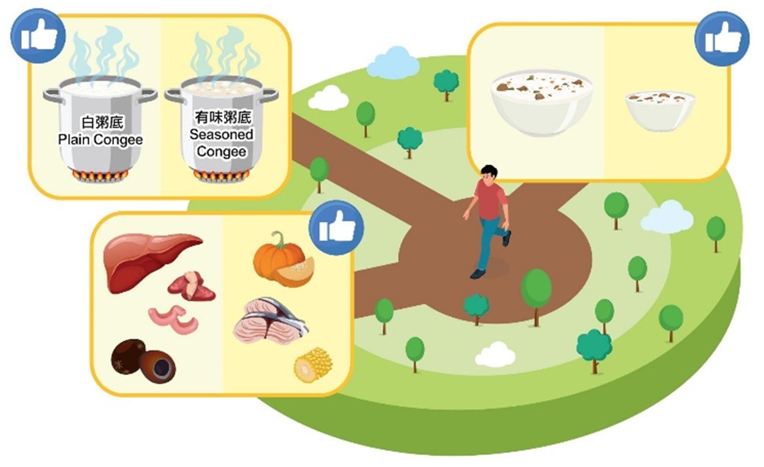 - Provide the choice of plain congee with little or no seasoning added as the base for cooking congee with ingredients.
