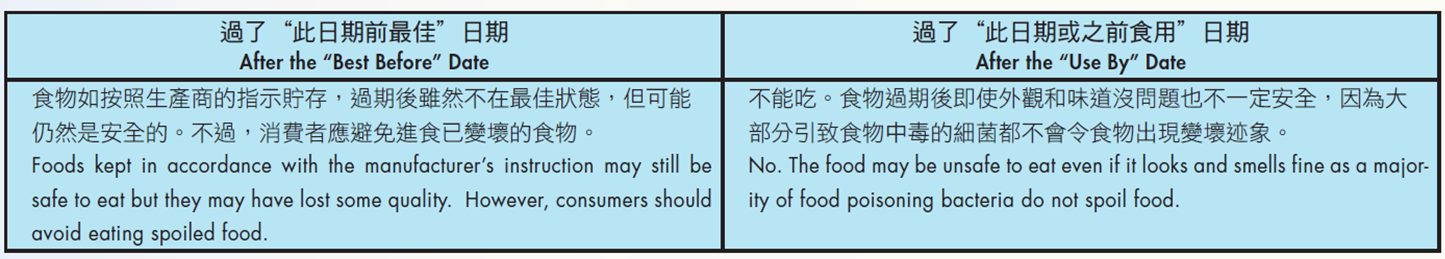 In Hong Kong, like some other places such as Australia, New Zealand and the European Union, both "best before" and "use by" dates are the compulsory form of date marking, which provide consumers with a guide to the shelf life of prepackaged food.