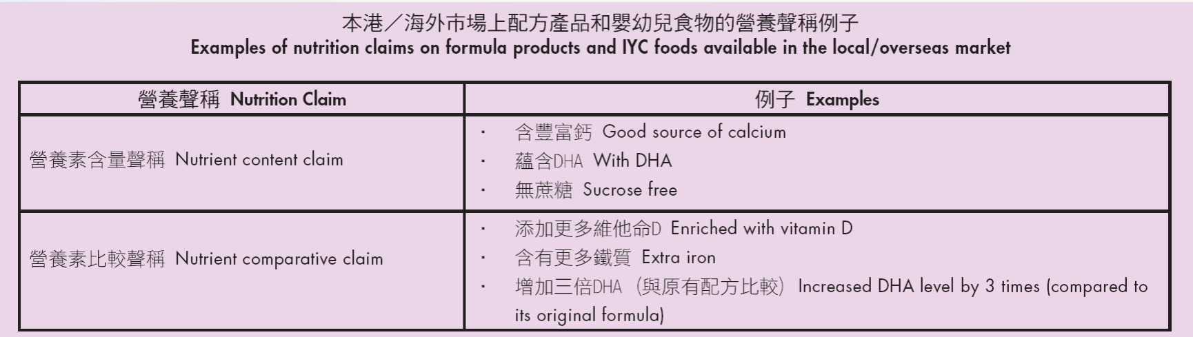 As illustrated by the above examples, while some nutrition claims on formula products and IYC foods provide important information, others may not always be useful in making smart food choices. Parents and care-givers can read the nutrition label to understand the nutritional property of the food product.