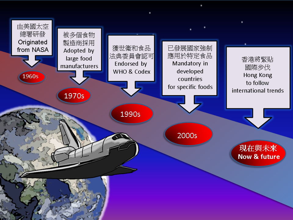 HACCP stands for Hazard Analysis Critical Control Point. It is a safe food production system originated and developed for U.S. Space Programme in 1960s when the idea of Critical Control Point (CCP) was first introduced to produce safe and uncontaminated foods for astronauts. Since the 1970s, HACCP was adopted by a number of large food manufacturers to produce foods for the general public. In the 1990s, HACCP system has been recognised by international bodies including the World Health Organization and the Codex Alimentarius Commission as an effective way to prevent physical, chemical and microbiological hazards in foods. Over the past decades, HACCP has become mandatory in the production of certain food products in some developed countries. HACCP is now mandatory by law for manufacturers of meat and poultry, seafood, and juice products in the United States, and for federally-registered meat and poultry establishments in Canada. In Australia, certain high risk food businesses are required to have HACCP-based food safety programmes.