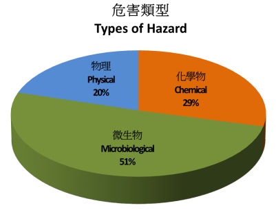 In response to these incidents, the CFS issued 32 trade alerts, 183 food incident posts and 42 press releases in 2016. The hazards identified included microbiological (e.g. Listeria, Salmonella, E. coli , etc.), chemical (e.g. use of unauthorised/ excessive preservatives, undeclared allergens) and physical (e.g. foreign body), with over 50% of cases related to microbiological hazards (see Figure).