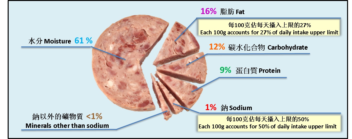 Figure 1: Nutritional composition of luncheon meat (source: Nutrient Information Inquiry System , nutritional composition may vary depending on the formula of the products).