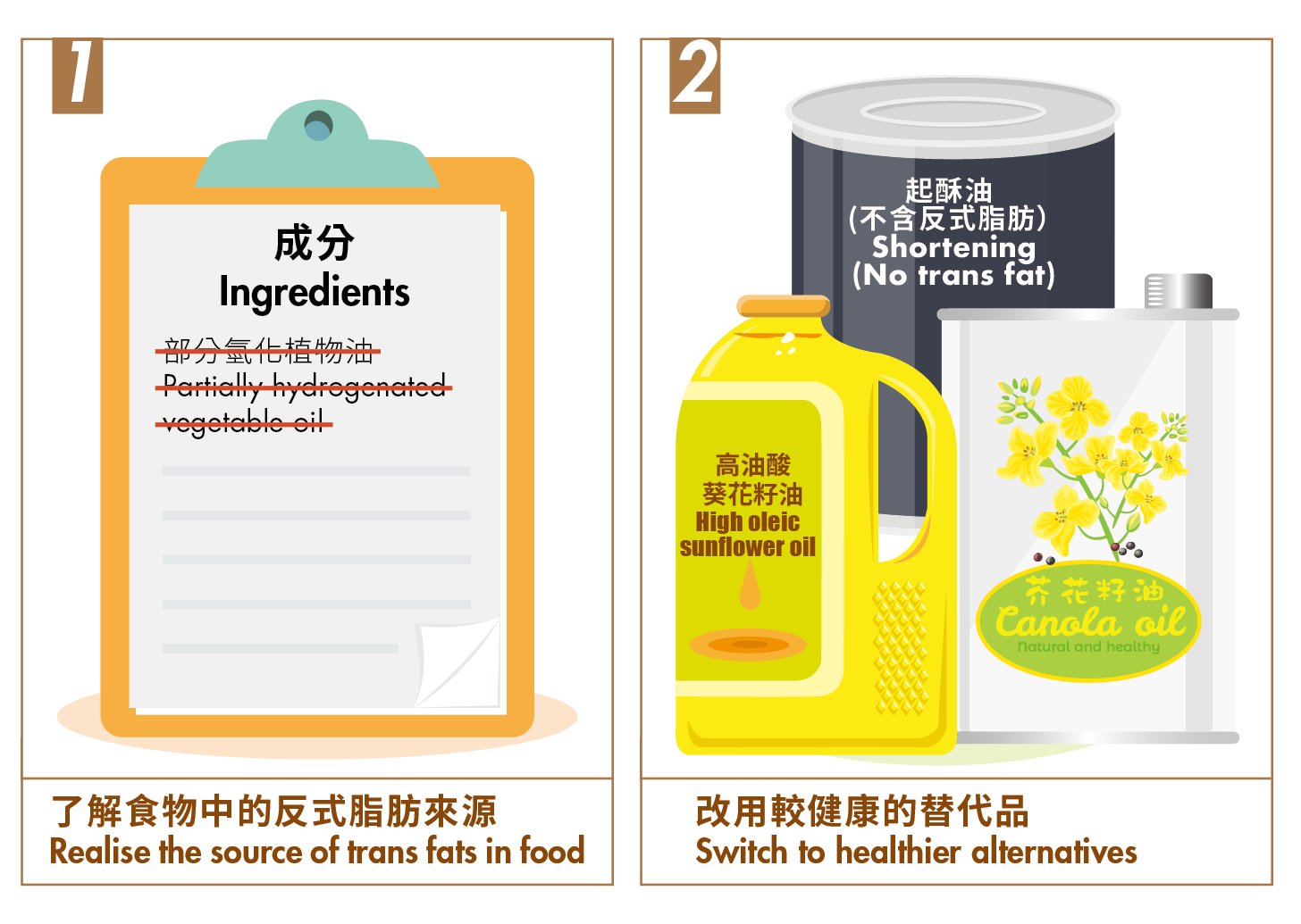 Trans fats (TFAs), a double jeopardy to heart health by increasing “bad” cholesterol and decreasing “good” cholesterol in blood, attribute to more than a half million deaths from heart disease every year around the world. Calling for concerted actions from governments and food industry, the World Health Organization (WHO) aims to eliminate industrially-produced trans fats (IP-TFAs).