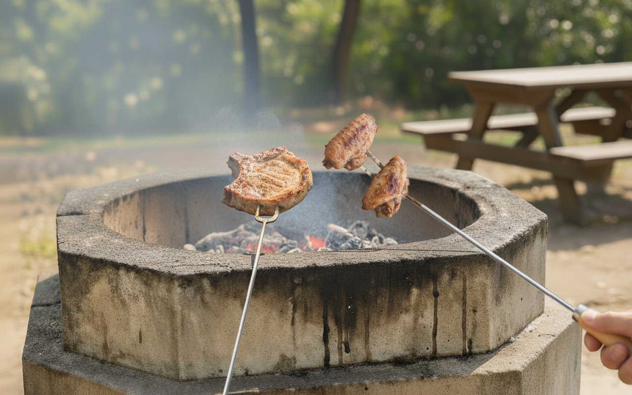 Cooking food thoroughly is vital to eliminate harmful bacteria that can cause illness. For most food, the internal temperature should reach 75°C for at least 30 seconds. To ensure that food is thoroughly cooked, needle-type food thermometers can be useful for checking doneness. If in doubt, it is better to cook the meat a little longer than risk undercooking. Using foil to wrap food during barbecuing can help retain heat while shielding the food from fumes emitted by the heat source. Additionally, in order to reduce exposure to potentially harmful polycyclic aromatic hydrocarbons (PAHs) from BBQ food, which may form when food is in direct contact with flames or when melted fat drips onto heat sources like hot charcoal, it is advisable to trim visible fat from meat before barbecuing, partially cook the meat (e.g. by boiling) before barbecuing, avoid dripping fat onto the charcoal, grill meat in foil packets to avoid contamination from smoke and flame, place the meat further from the heat source when barbecuing to avoid charring of meat, and to remove charred parts of food. In any case, the meat should still be cooked thoroughly to eliminate pathogens.