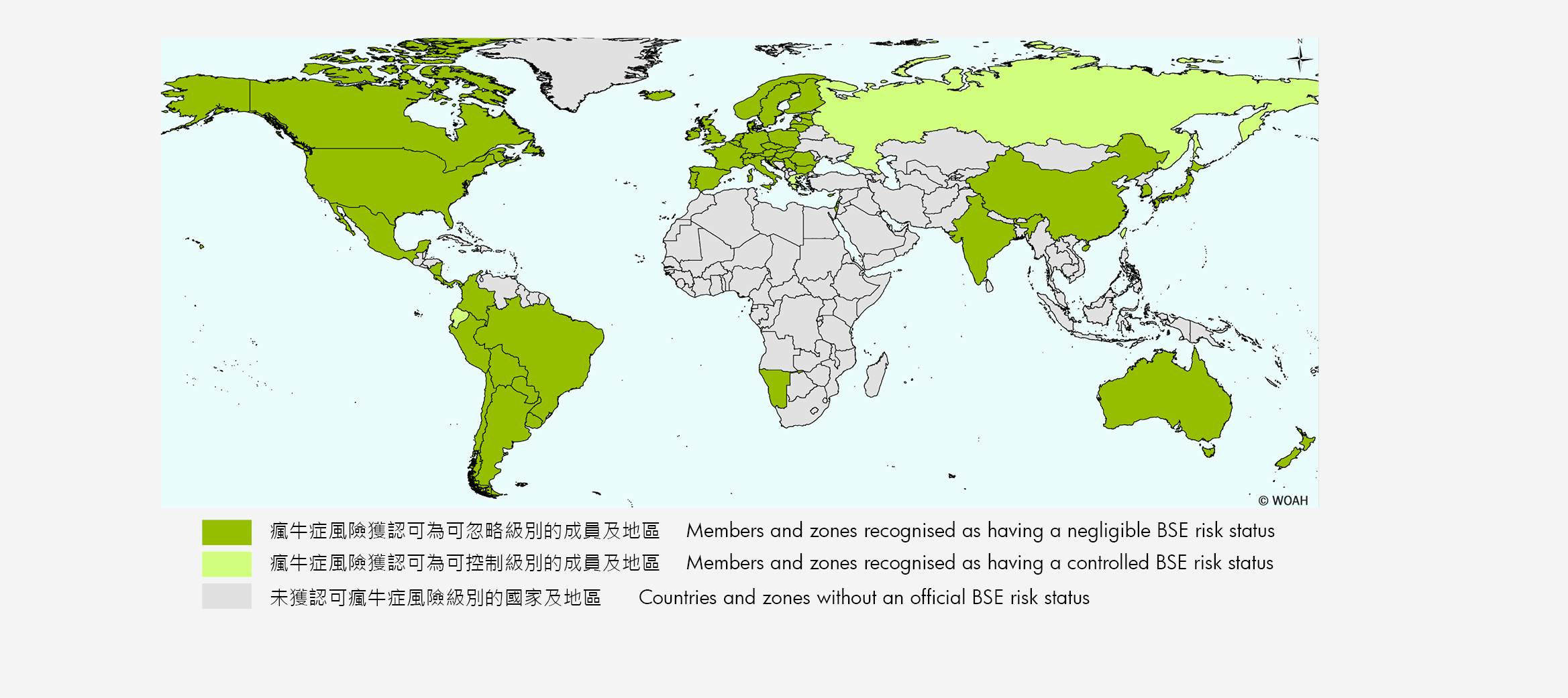 WOAH mandates distinct responses to classical and atypical BSE, reflecting their differing risks to animal and human health. Classical BSE, as a WOAH-listed disease, triggers international reporting obligations and strict containment measures. When a classical BSE case is detected, the affected country must notify WOAH, conduct trace-back investigations, impose quarantines on exposed herds and review feed ban compliance. WOAH officially recognises a country’s BSE risk status, from the lowest risk level “negligible”, to “controlled” and the rest as “undetermined”, after evaluating its history with classical BSE, implementation of the feed ban and disease surveillance, with trade guidelines aligned to each risk status. In Hong Kong, beef should be imported from countries or areas that meet public health requirements corresponding to the WOAH official BSE risk status.