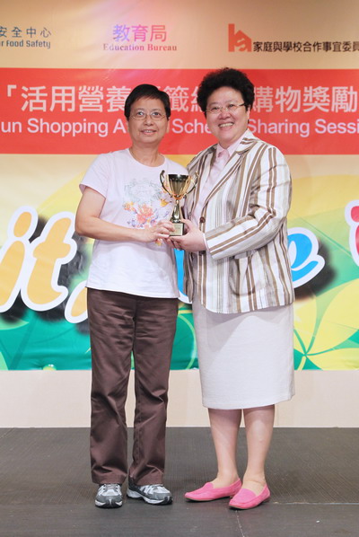 The Controller of the Centre for Food Safety, Dr Gloria Tam (right), presents the Outstanding Prize to a winner of the Nutrition Labelling Fun Shopping Award Scheme (Individual Participant Section).
