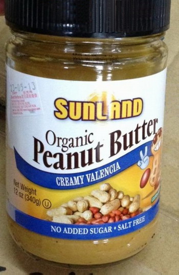 Photo shows another affected product, Sunland Organic Valencia Peanut Butter Crunchy.