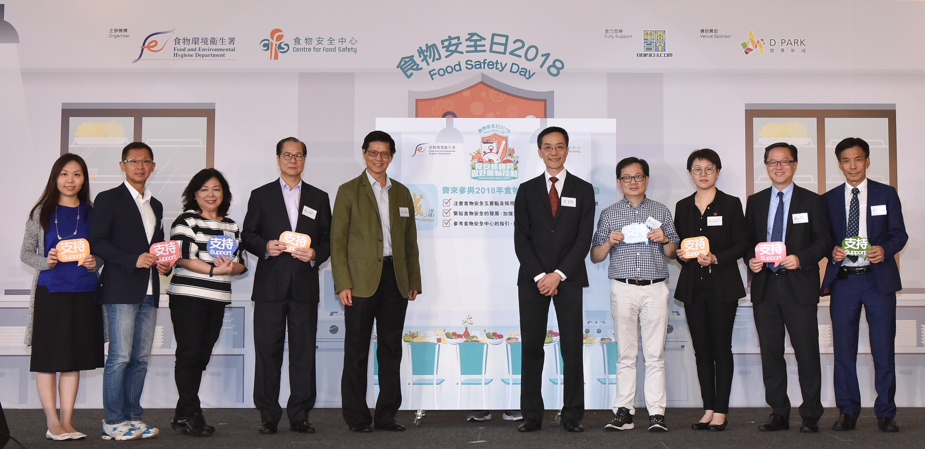 Other guests attending the launch ceremony of Food Safety Day 2018 included the Executive Administrator (Accreditation) of Innovation and Technology Commission, Ms Bella Ho, Food Safety Charter signatories and representatives of the food trade and the Consumer Liaison Group.