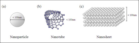 (c) Nanosheet: Nano-object with one external dimension in the nanoscale.
