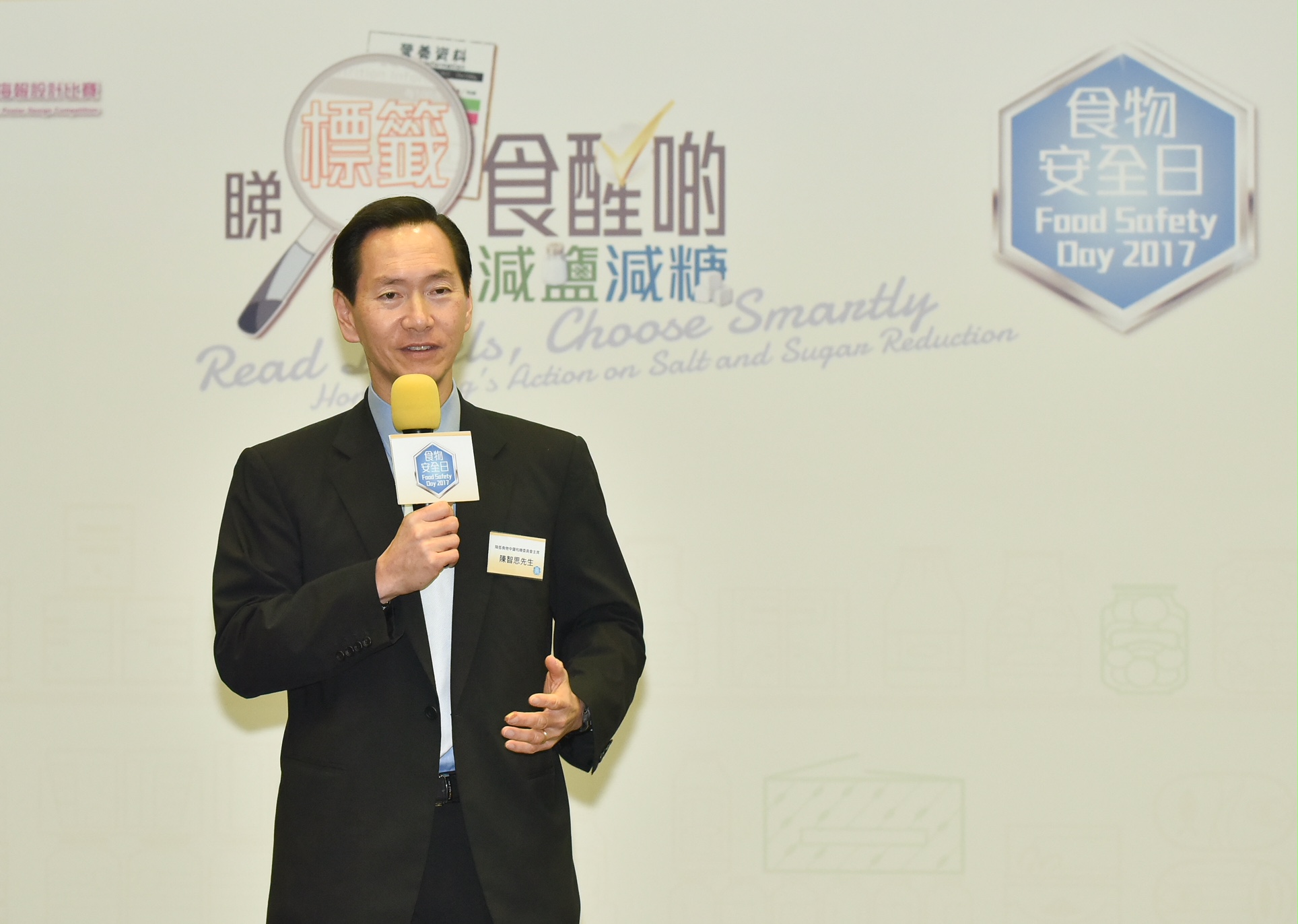 Photo 2:The Chairman of the Committee on Reduction of Salt and Sugar in Food, Mr Bernard Chan, addresses the Food Safety Day 2017 cum Launching Ceremony for the "Salt/Sugar" Label Scheme for Prepackaged Food Products.