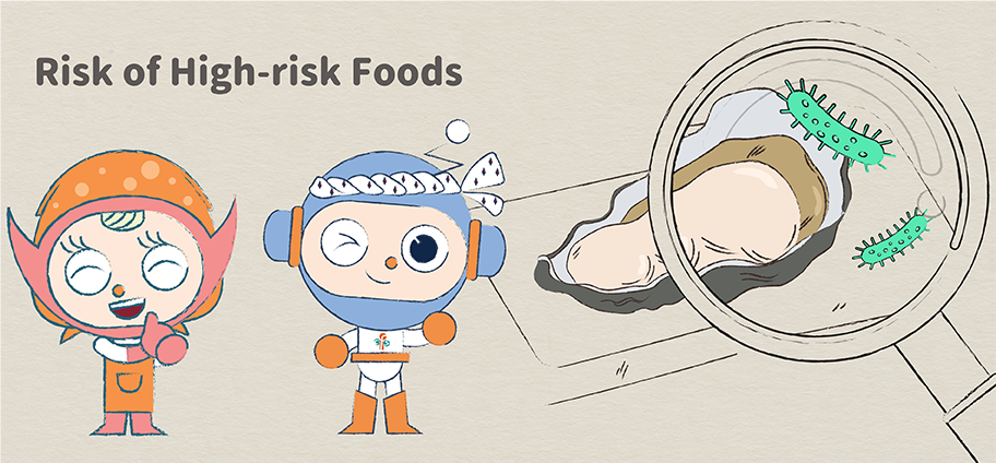 Raw or undercooked foods, e.g. meat, poultry, seafood and eggs, are high-risk foods, as there is no or inadequate heat treatment to eliminate the microorganisms present that can pose risks to human health. Common symptoms of illnesses caused by eating food contaminated by bacteria or viruses include vomiting, diarrhoea, abdominal pain and fever. As for parasites, some can cause mild to moderate gastrointestinal symptoms.