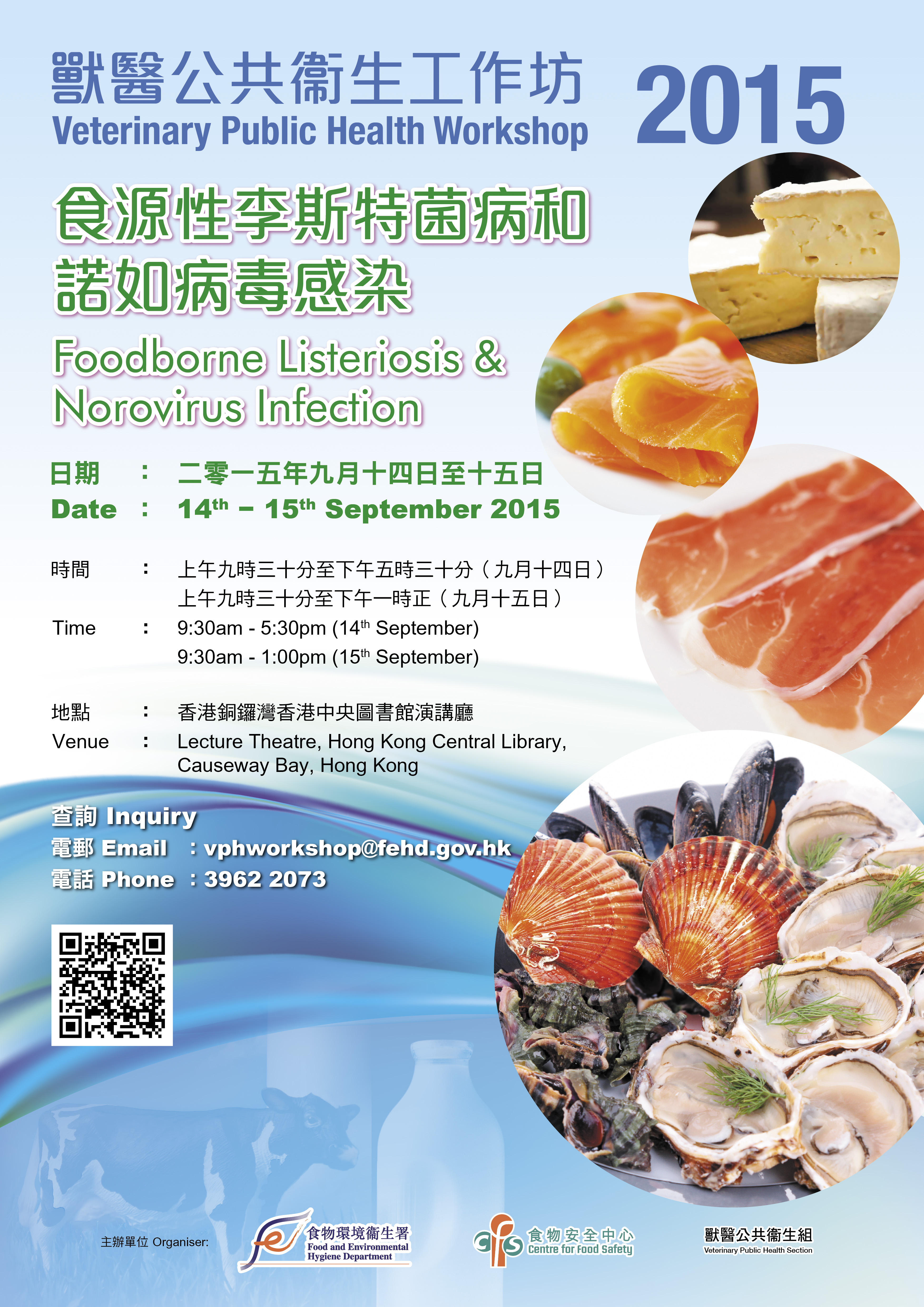 First held in 2002, the Veterinary Public Health (VPH) Workshop has been an annual event whereby speakers ranging from academics and government officials from all over the world have been invited to Hong Kong. The Workshop is a platform to raise awareness of the latest development of scientific knowledge in the field of veterinary public health and food safety. This year, we have the honour of having guest speakers from United Kingdom and the United States to share their expertise and insight on Foodborne Listeriosis and Norovirus Infection.