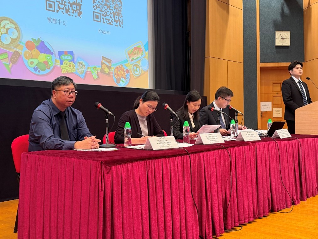 Photo shows the Controller of the Centre for Food Safety, Dr WONG Wang, Christine (forth right), Consultant (Community Medicine) (Risk Assessment & Communication), Dr CHEUNG Yung Yan, Terence, (third left) with other speakers, in the seminar