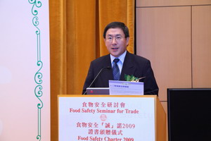 The Director of Food and Environmental Hygiene, Mr. CHEUK Wing-hing delivered opening speech at the Food Safety Charter 2009 Presentation Ceremony