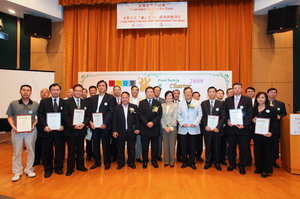 Hon Cheung Yu-yan, Tommy, member of the Legislative Council Panel on Food Safety and Environmental Hygiene presented the Food Safety Charter 2009 Certificate to a food trade representative