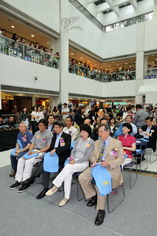 The Permanent Secretary for Food and Health (Food), Mrs Marion Lai (centre), officiated at the opening ceremony of the Food Safety Day 2012. Other officiating guests included the Director of Food and Environmental Hygiene, Mr Clement Leung; the Controller of the Centre for Food Safety (Acting), Dr YY Ho; the Chairman of the Legislative Council Panel on Food Safety and Environmental Hygiene, Hon Tommy Cheung Yu-yan; the Chairman of the Expert Committee on Food Safety, Professor Kwan Hoi-shan; the Chairman of Hong Kong Food Council, Mr Wong Ka-wo; the Chief Executive of Consumer Council, Ms Connie Lau Yin-hing; and representatives of Food Safety Charter Signatories.