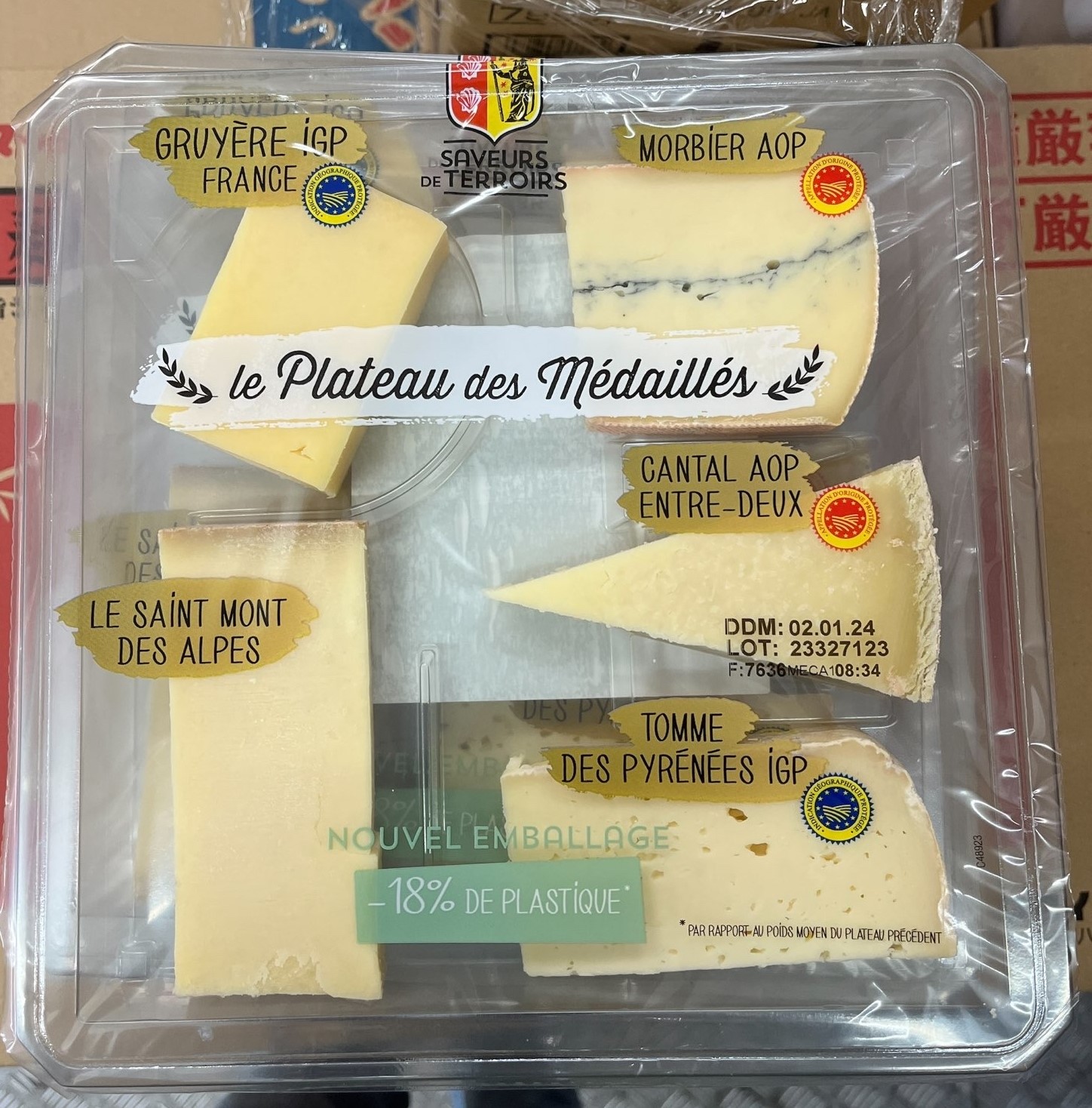 | Product Name and Description | Product name: Plate of 5 Medals Winner Assorted Cheeses (with 4 Types of Raw Milk Cheese) (Le Plateau des Médaillés) Brand: CANTOREL (Saveurs de Terroirs) Place of origin: France Net weight: 310 grams Best-before dates: November 28, 2023 to January 9, 2024 Batch: all lots Importer: City Super Limited |
