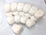 “Fish balls / fish cakes” is a food item common in Hong Kong that is made from ground fish and various other ingredients, and served in slices, or as a ball, a cube, a cake or other shapes. “Fish balls /fish cakes” must contain fish as one of the ingredients. CFS will, based on the claims as sold and the information on the packaging (e.g. the ingredients list on the food label of pre-packaged food), determine if the product is a “fish balls / fish cakes”, or obtain information of food ingredients from relevant manufacturers/suppliers if necessary. The following shows some common “fish balls / fish cakes” fulfilling the requirement above: |