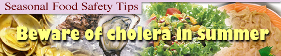 The hot and humid summer weather favours bacterial growth. Public should pay special attention to food safety in order to prevent cholera infection through consuming food and drinks.