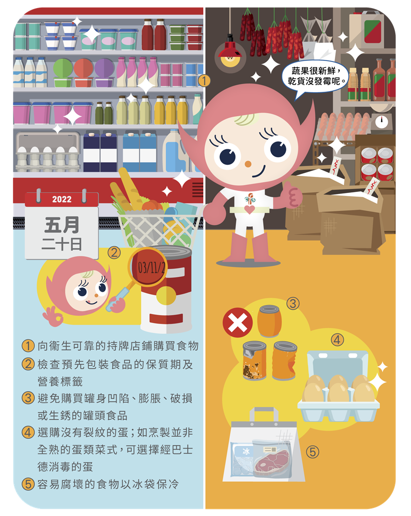 本文要点:购买食物时,可利用「食物安全五要点」中的「精明选择」、「生熟分开」和「安全温度」。