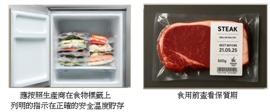 图3:进食前妥善贮存真空包装食物并查看标签