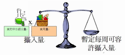 根据本港中学生的食用模式和化验分析厘定的食物中水银分量,摄入量一般和偏高的中学生的估计摄入量均低于暂定每周可容许摄入量(图二),故此这类人士从食物中摄入水银以致影响健康的风险并不高。