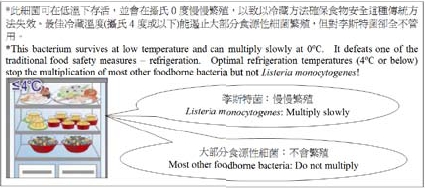 李斯特菌散布于不同的环境和食物中。如时间充裕,李斯特菌可在冷藏温度下大量繁殖,因此保质期较长的即食食物如软芝士和即食家禽及肉类为最高危(图一)。不过,结冰环境却不利李斯特菌繁殖。