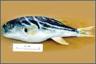 插图﹕一些有毒的河豚品种:月尾兔头鲀(拉丁学名:Lagocephalus lunaris) (上); 黄鳍多纪鲀(拉丁学名:Takifugu xanthopterus) (下) (由渔农自然护理署提供)