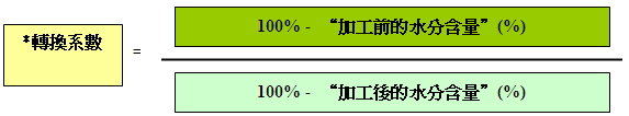 我们必须留意,食物样本在脱水过程之前和之后的水分含量会因品种、季节、地理环境和加工要求等多项因素而有所不同,因此,直接化验食物样本在加工之前和之后的水分含量可较准确估计"转换系数"。如"转换系数"来自公认的数据,业界应确保有关数据来源是准确和可靠的。
