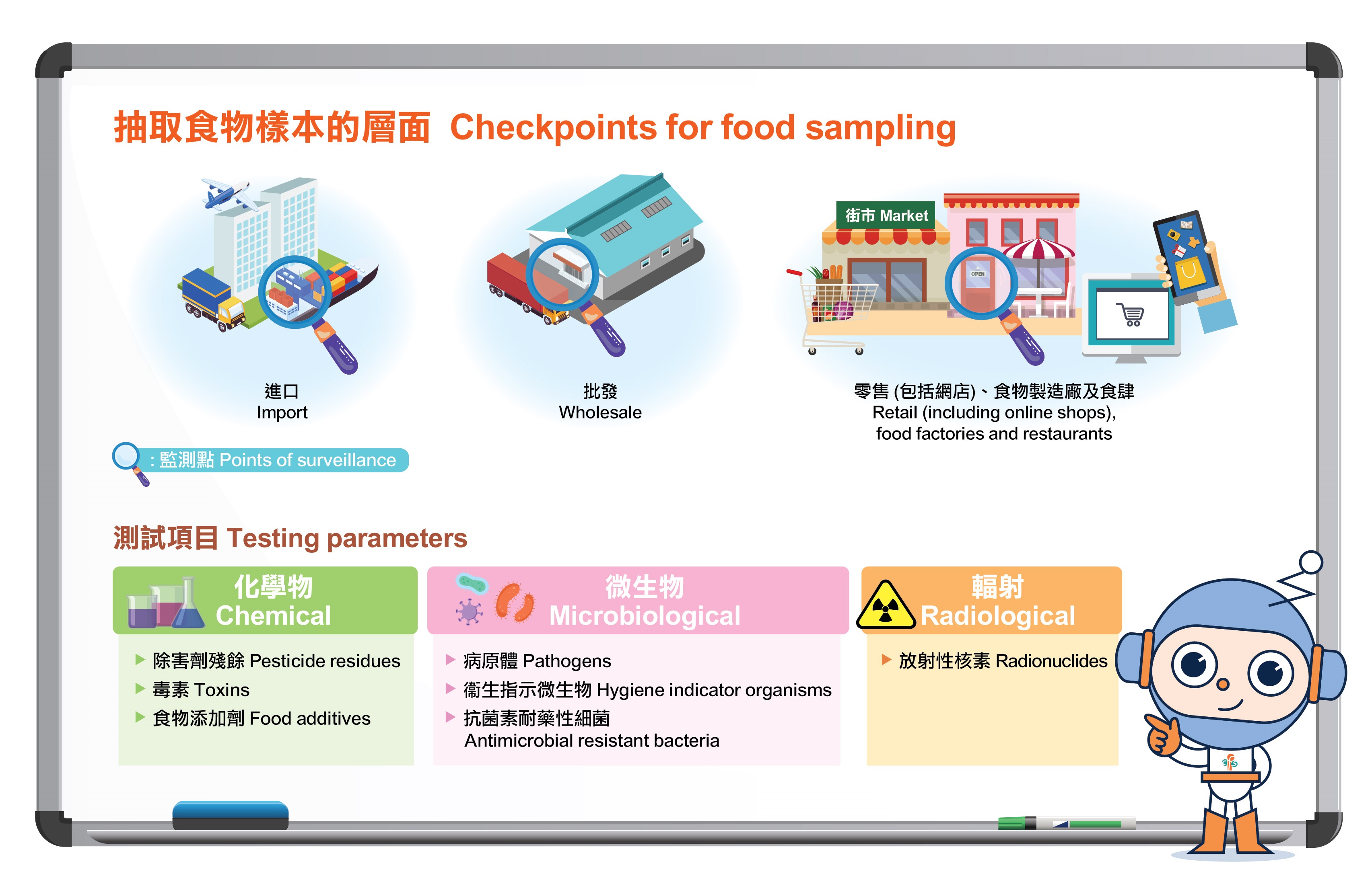 图:食物安全中心食物监测计划监察来自不同层面的食物,涵盖各类食物安全范畴