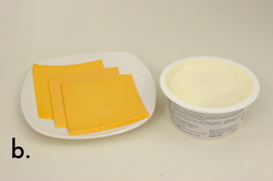 加入了防腐剂的各式食物,包括 (a) 干果(提子干、芒果干及话梅)、 (b) 芝士及 (c) 火腿。