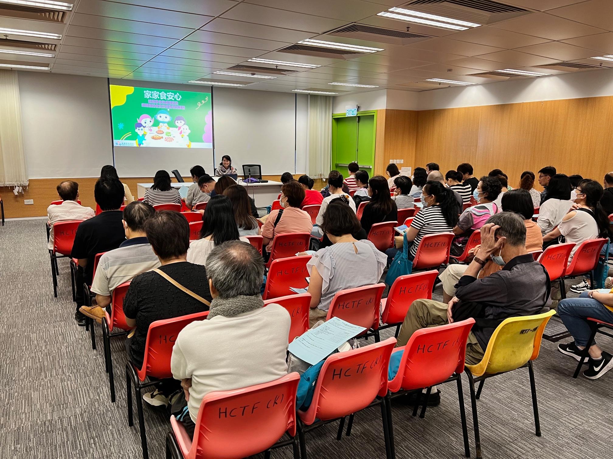食物环境卫生署食物安全中心(中心)今日(六月七日)启动食物安全日2024的全年活动,强调适当的温度控制对保障食物安全的重要性,并提醒食物业和市民将配制好和已煮熟的食物保存于适当的热存/冷存温度,对于预防可引发食源性疾病的有害细菌滋长尤为重要。图示中心早前举办公众讲座和工作坊,讲解「食物安全五要点」和居家食物安全建议。