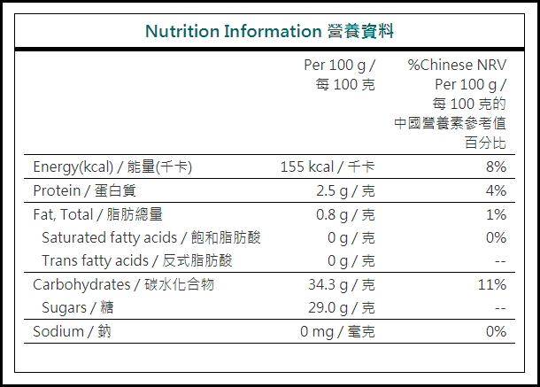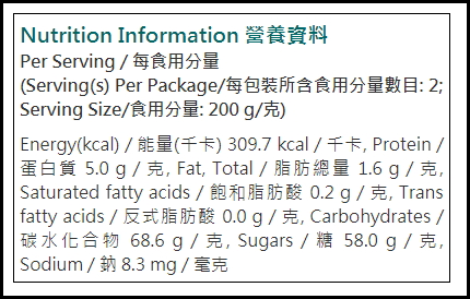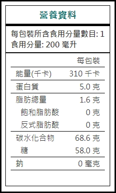 - 如要作出任何营养声称,使用者须备有相关配料中该营养素的含量。