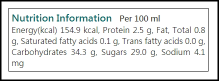 - "每100克(或毫升) ":标示每100克(或毫升)食物中,有关营养素的绝对含量;或/及