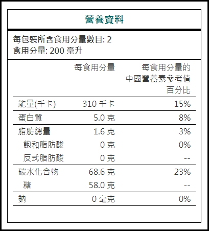 - 以下是一些载有中国营养素参考值百分比的营养标籤样本: