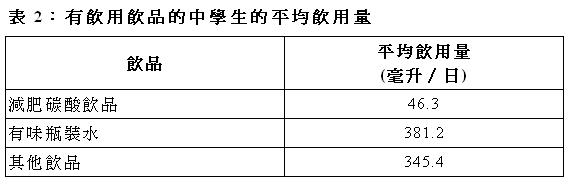 估计本港中学生从饮品摄取到这项研究所选取的人造糖分量时,食物环境卫生署采用了本港中学生的饮品饮用量数据,以及从本地市场抽取的饮品样本的人造糖含量。