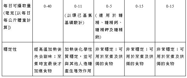 22. 估计的摄取量继而与专家委员会订定的各种人造糖每日可摄取量( 表1) 比较。