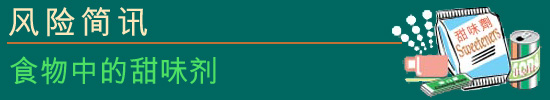 在香港,批准在食物中使用的甜味剂都通过国际机构(即联合国粮食及农业组织∕世界卫生组织联合食物添加剂专家委员会(下称"专家委员会"))的安全评估。这些甜味剂只要不是过量食用,不会对人体有害,也不会导致产生畸胎或致癌的情况。根据现有的证据,孕妇和儿童无须采取特别的预防措施。