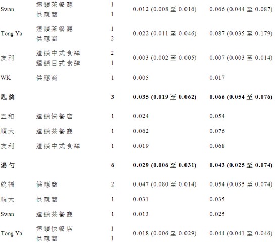 65.此外,研究只限检测全新未经使用的仿瓷餐具样本,样本数目受存货量所限,而且食肆使用的仿瓷餐具并非随便可在市面购买得到。